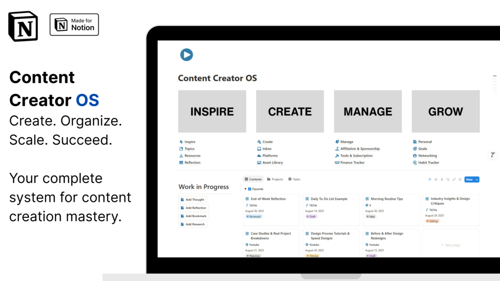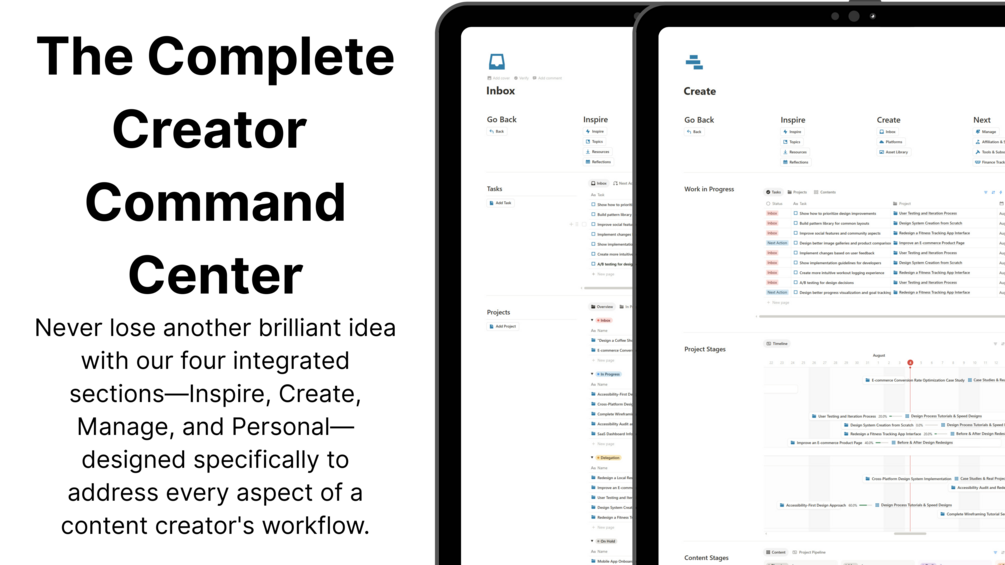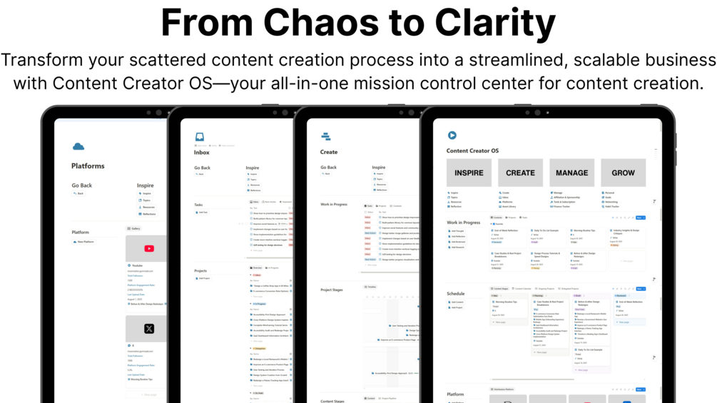 Transform your content creation process from chaotic to strategic with this comprehensive dashboard designed specifically for content creators, influencers, and digital entrepreneurs.