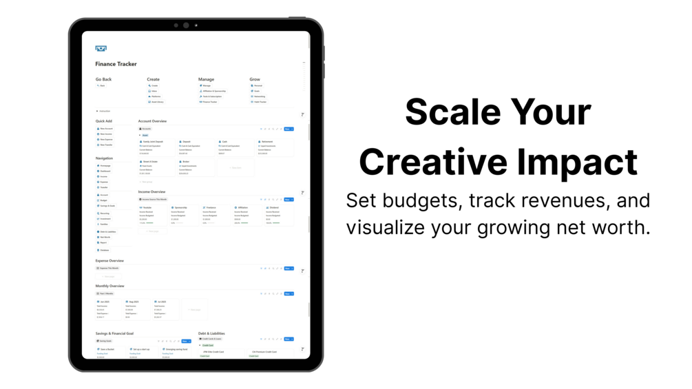 Track all income streams in one place with our finance dashboards. Monitor platform earnings, sponsorships, and affiliate income to identify what's working and scale your most profitable content types.