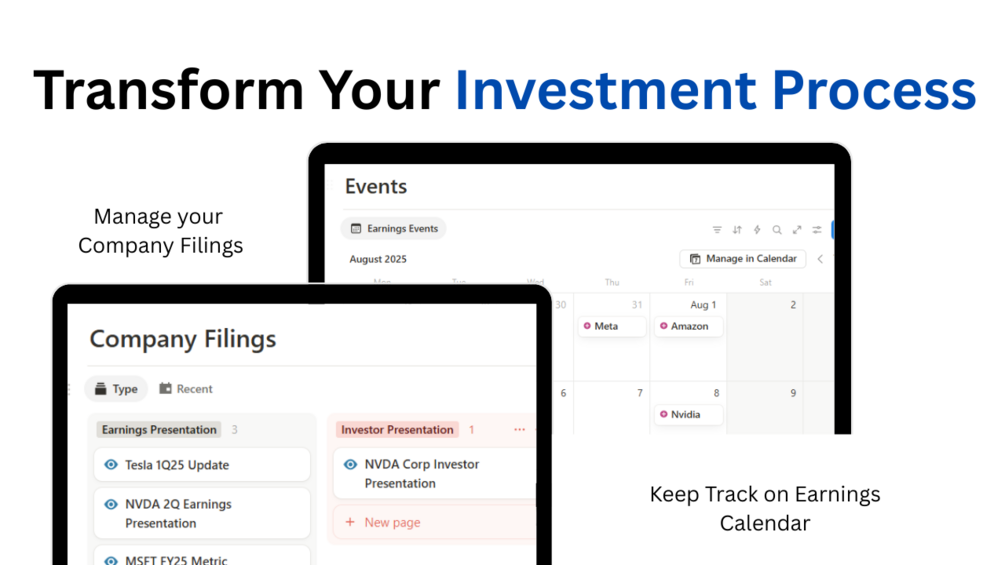 Stop juggling multiple tools and platforms. Everything you need for serious equity research is organized in one powerful Notion workspace.