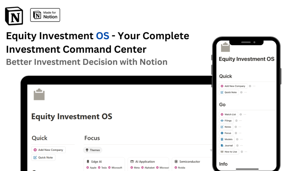 Are you tired of scattered spreadsheets, lost research notes, and missed opportunities? Equity Investment OS is the comprehensive Notion template that transforms how serious individual investors research, track, and manage their equity investments.