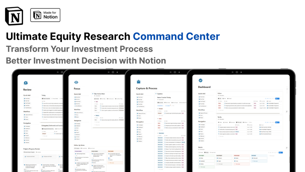 A comprehensive Notion template specifically designed for professional investors seeking to streamline their equity research workflow, organize investment decisions, and maximize productivity.