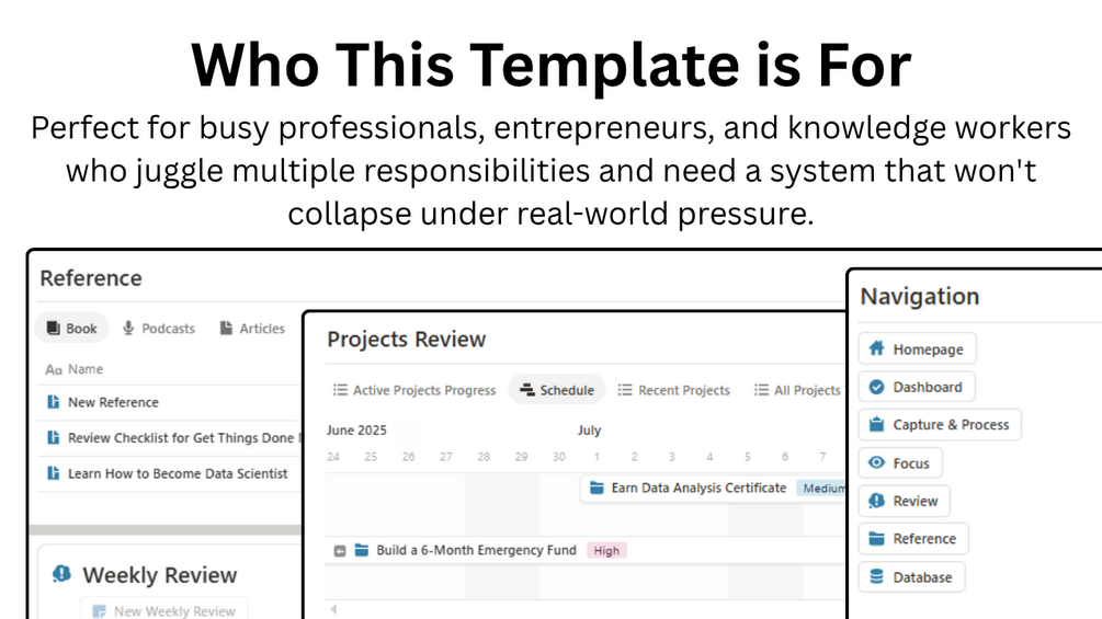 - This template is designed for busy professionals, entrepreneurs, and knowledge workers who juggle multiple responsibilities and need a system that actually works in the real world.