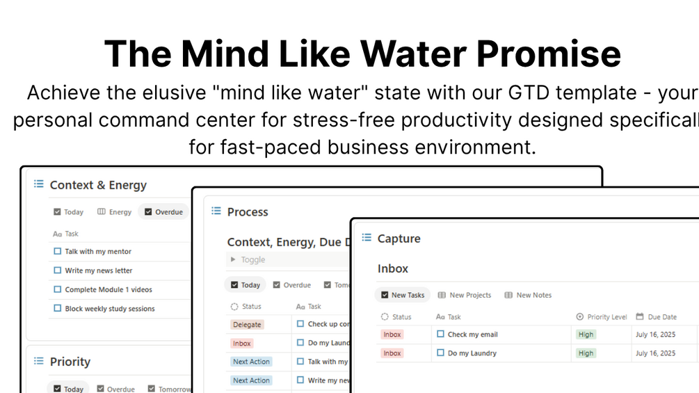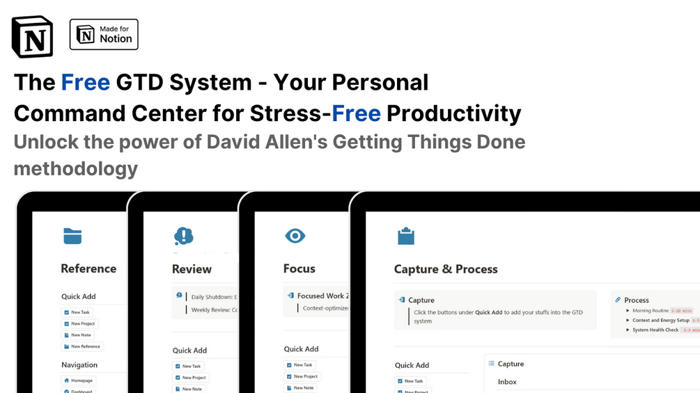 - Whether you're a GTD veteran looking for a Notion-optimized implementation or someone new to productivity systems but tired of feeling overwhelmed, this template provides the structure you need while remaining flexible enough to adapt to your unique work style.